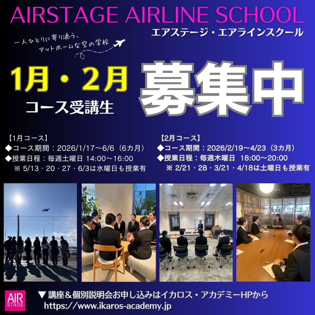 【エアステージ・エアラインスクール】1月生コース、2月生コースお申し込み受付中!