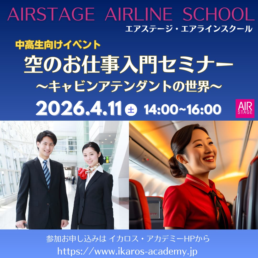イベント最後には、4月1日開講予定の2027年度受験対策コース(夏ターム・既卒受験対象)についてもご説明いたしますので、スクールでの受験対策を検討されている方はぜひご参加ください。CAを目指す男性の方も大歓迎です!